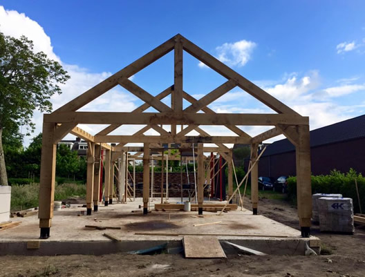 | Complete houtconstructie voor een woonhuis te Hilversum. Bekijk hier de overzichtstekeningen om een indruk te krijgen van de omvang. |